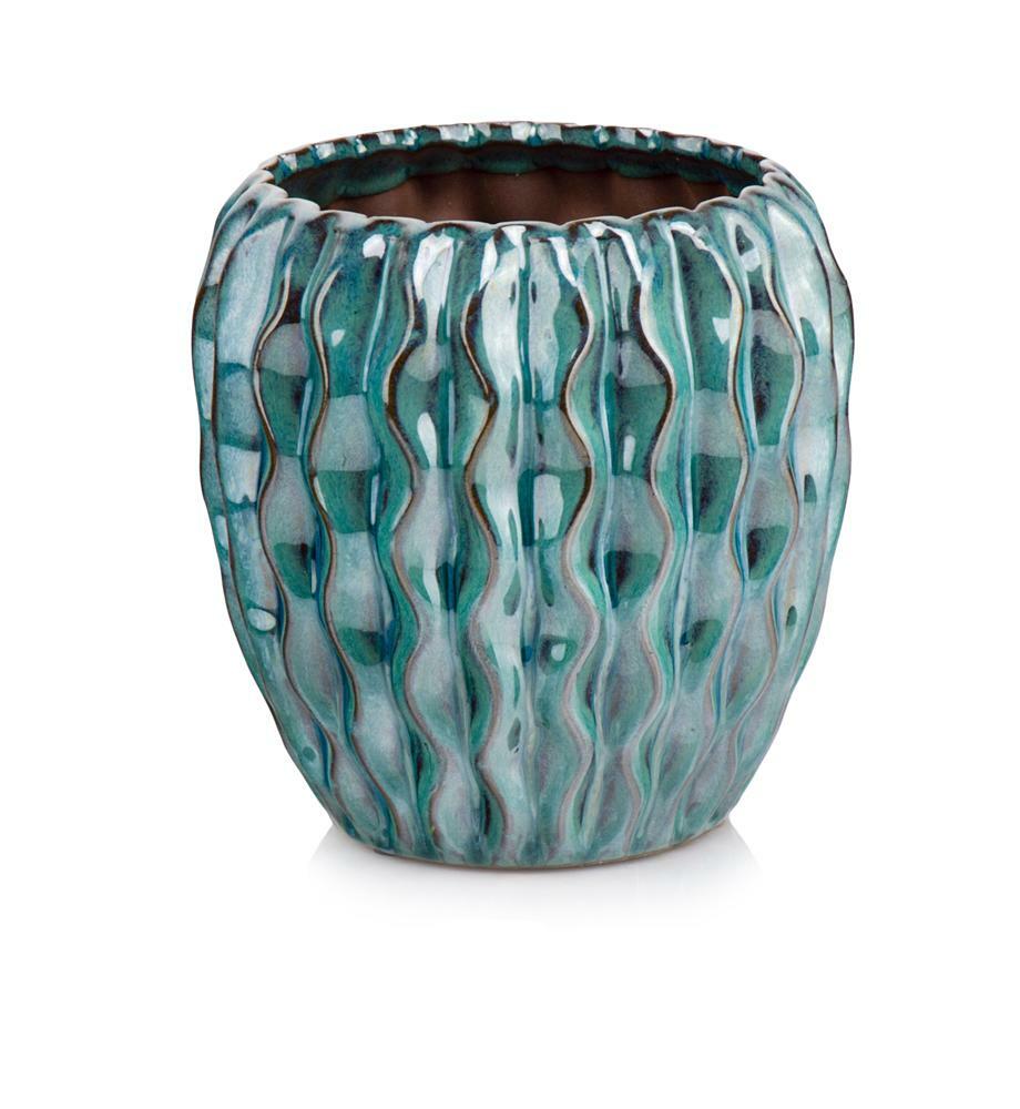 Květináč tyrkys s vlnkou 19x19cm
