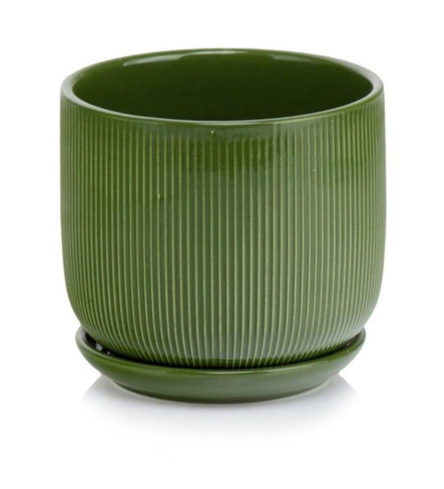Květináč zelená/podmiska O 20 cm / H 18 cm